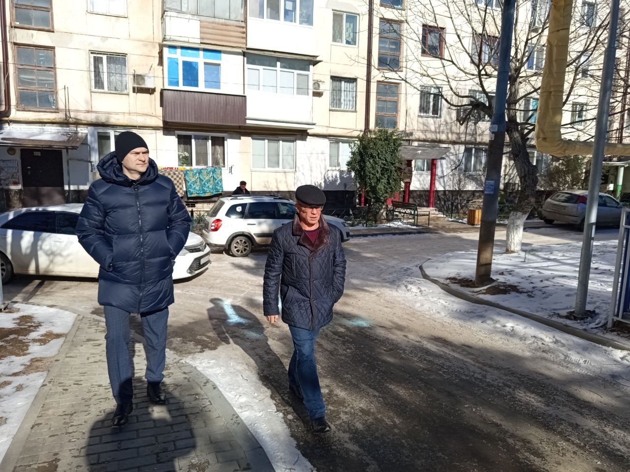 В рамках визита Дмитрий Шеряко вместе с главой администрации Молодежненского сельского поселения Владимиром Ивановым осуществил мониторинг работы управляющих компаний, а также оценил состояние уборки придомовых территорий и подъездов многоквартирных домов.